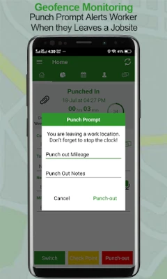 • Punch Prompt alerts employees when they enter and exit a geofenced jobsite