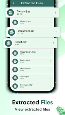 4. The extracted files feature of TAR opener lets the user view extracted files from the device. Using this feature, a list of extracted files will display on the screen. The user can view, share and delete the files directly from the feature. Finally, the user can search for any particular extracted file using the search bar at the top.